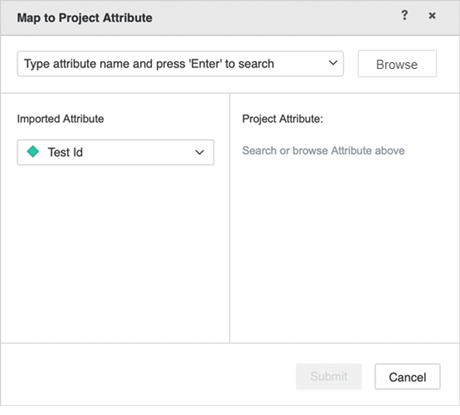 您可以将数据集中的导入属性映射到现有项目属性及其对应的属性形式。包含数据集的达析报告必须连接至远程环境并且未存储在本地。此外,您必须连接到 Intelligence 服务器。