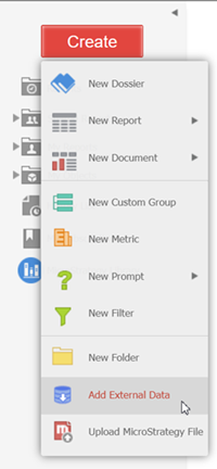 在 MicroStrategy Web 中,单击 创造 按钮 > 添加外部数据.