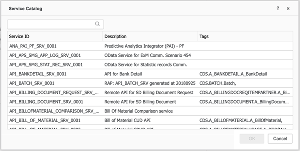 Para obtener más información sobre el catálogo de servicios, consulte el Portal de ayuda de SAP.