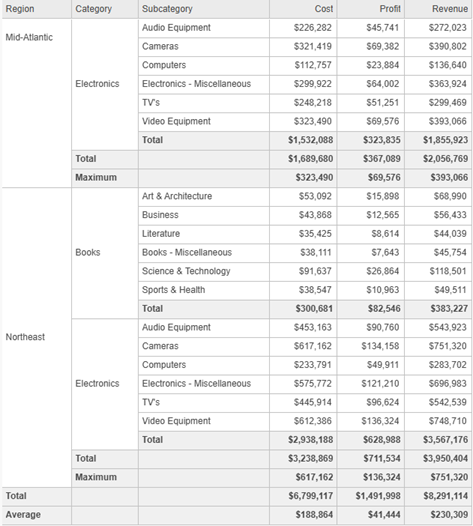Subtotals reflect data rolled up to an attribute level. Therefore, subtotals refer to all types of totaling, including grand totals, totals, and subtotals, depending on the attribute levels included in the report and how the subtotal is applied.