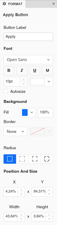 Right-click the button to format and select Format, or select the button in the Layers panel.