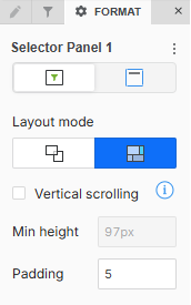 - To create a selector panel, in the top toolbar, click Panel Stack