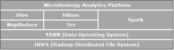 The diagram below shows the layers through which the data travels to reach Strategy from Hadoop systems.