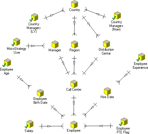 The Geography hierarchy contains attributes such as Country and Region, as well as Distribution Center, Call Center, and employee-specific attributes. It is easy to understand why Country and Region are in the Geography hierarchy, but what about Distribution Center, Call Center, and the employee-related attributes?