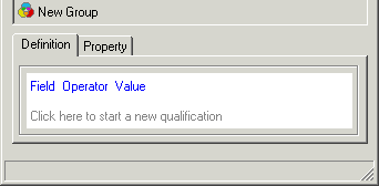 If you select a Filter derived element in the Derived Elements Editor, the Definition tab displays a qualification pane to create filter qualifications, as shown below.
