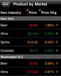 Interactive Grid widget, which displays data in a compact tabular layout. Attributes and metric values are displayed in columns in the widget's grid, as shown below. If a column contains more than one metric, users can customize their display by changing the metric that is displayed in the column.