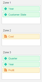 For example, if you customized the drop zones as shown below and you dropped some objects in them: