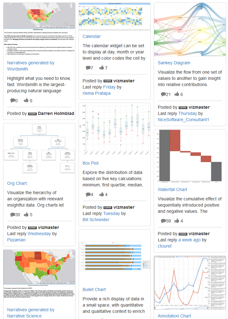 The Visualization Library includes custom visualizations provided by MicroStrategy, its partners, and its developer community. Two visualizations, made possible through MicroStrategy's partnership with Automated Insights (Wordsmith) and Narrative Science, illustrate the integration of artificial intelligence with MicroStrategy visualizations to produce intelligent narratives that describe the analytics users are viewing. This new feature interprets charts and graphs into clear and meaningful narratives that explain the context of hidden insights in data. Powered by advanced analytics, the narratives update as users filter the analysis, so they can engage in real-time smart data discovery.