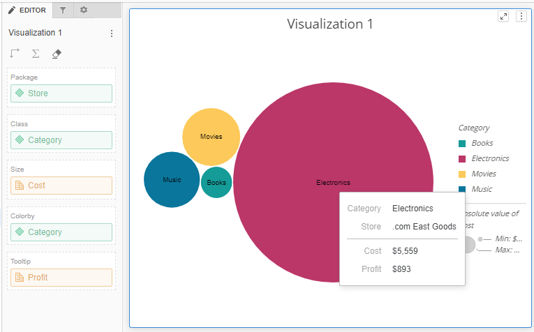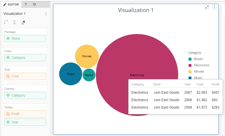 Compared to the out-of-the-box tooltip dropzone, custom visualization tooltips can hold attributes so that one visualization corresponds to multiple rows.