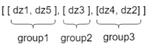 The pattern is a two dimensional array. Each inner array is a group and elements in a group are dropzone names. Dividing lines are inserted between groups in single row tooltips.