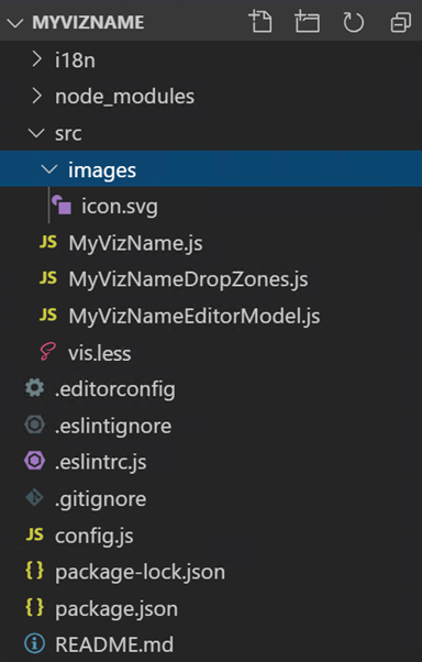 In your text editor, navigate to the new MyVizName folder. The file structure looks similar to the example below.