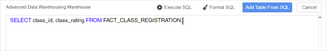8. Se si decide di aggiungere tabelle anziché inserire una query, fare clic su Aggiungi tabella da SQL. È possibile importare contemporaneamente tabelle aggiunte tramite selezione o digitazione di una query. Vedere Importare i dati da un database selezionando le tabelle per ulteriori informazioni.