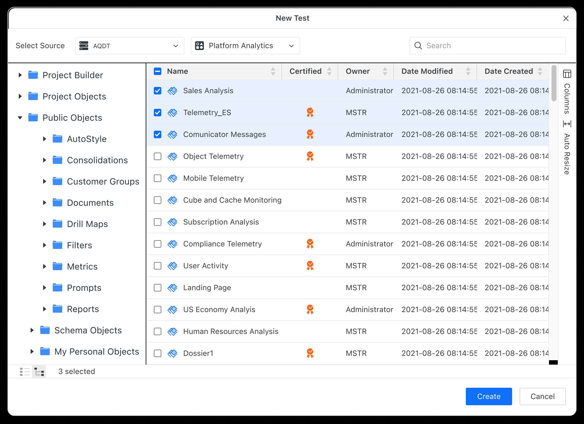 4. 目的の状態でスナップショットを作成するオブジェクトを選択し、作成 をクリックします。