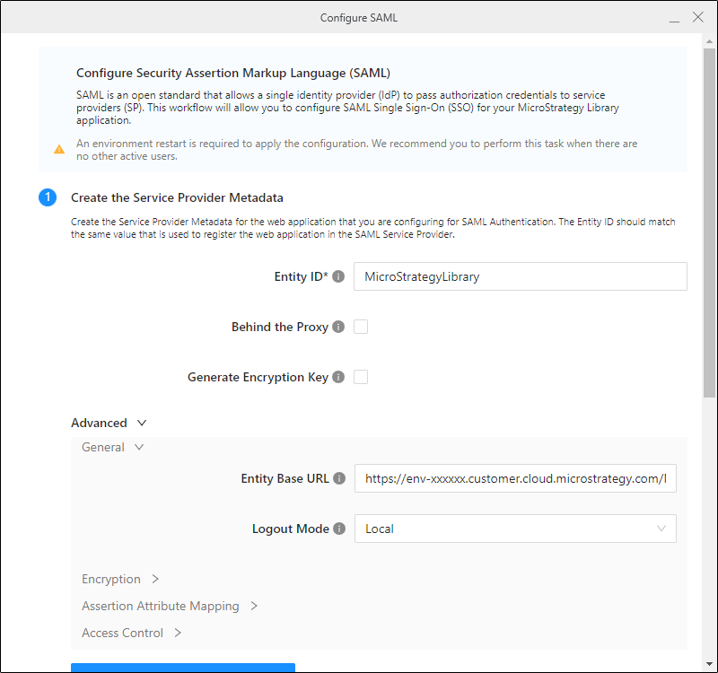 有关在 Library 中启用 SAML 的信息,请参阅启用 SAML 身份验证Strategy图书馆。